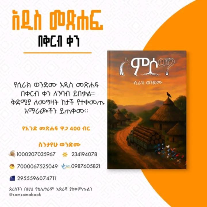 አዲሱ መጽሐፌ ሶምሶማ የአጫጭር ልቦለዶች ስብስብ ሲሆን ከዚህ ቀደም ከሰራሁባቸው ባይራ እና መዲና ዲጂታል መጽሔቶች ላይ ከታተሙት አንዳንዱ ተወስደው በአብላጫው ግን ከእኔ ጋር የቆዩት ተካትተው የተዘጋጀ መጽሐፍ ነው
