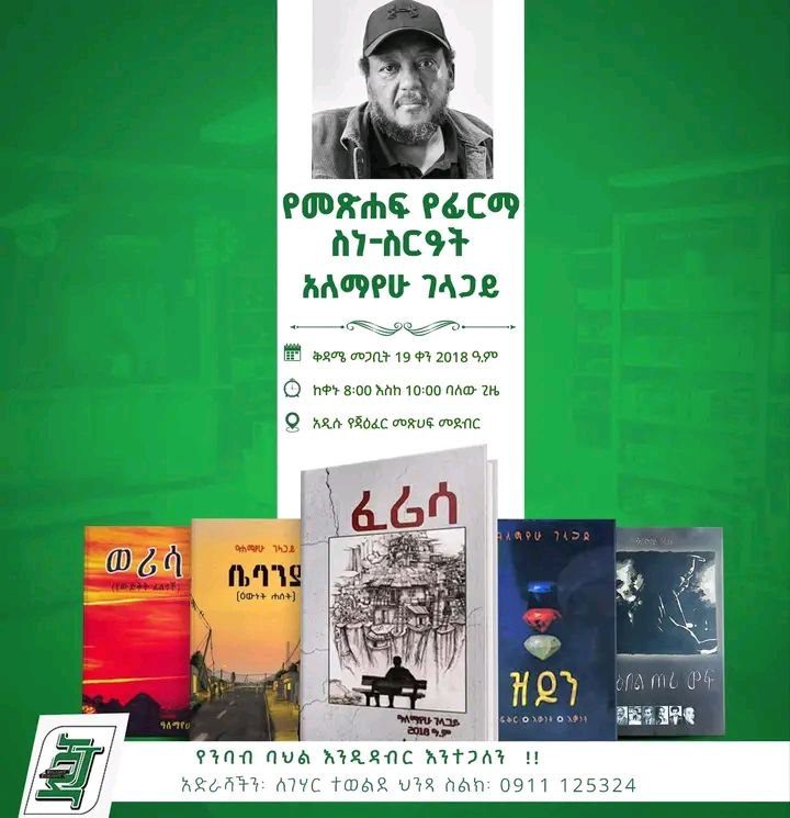 የመጽሐፍ የፊርማ ሥነ-ሥርዓት ከደራሲና ኃያሲ አለማየሁ ገላጋይ ጋር! የንባብ ባህል እንዲዳብርና ከሚወዱት ደራሲ ጋር በቀጥታ እንዲገናኙ ተጋብዘዋል። ዕውቁ ደራሲና ኃያሲ አለማየሁ ገላጋይ አዳዲስና ተወዳጅ ስራዎቹን ይዞ ይጠብቅዎታል። 🗓 ቀን፦ ቅዳሜ መጋቢት 19 ቀን 2018 ዓ.ም 🕒 ሰዓት፦ ከቀኑ 8፡00 እስከ 10፡00 📍 ቦታ፦ አዲስ የጃዕፈር መጻሕፍት መደብር ይምጡ፣ መጽሐፍዎን በደራሲው አስፈርሙ፣ በሃሳብም ተጋሩ። የንባብ ባህል |